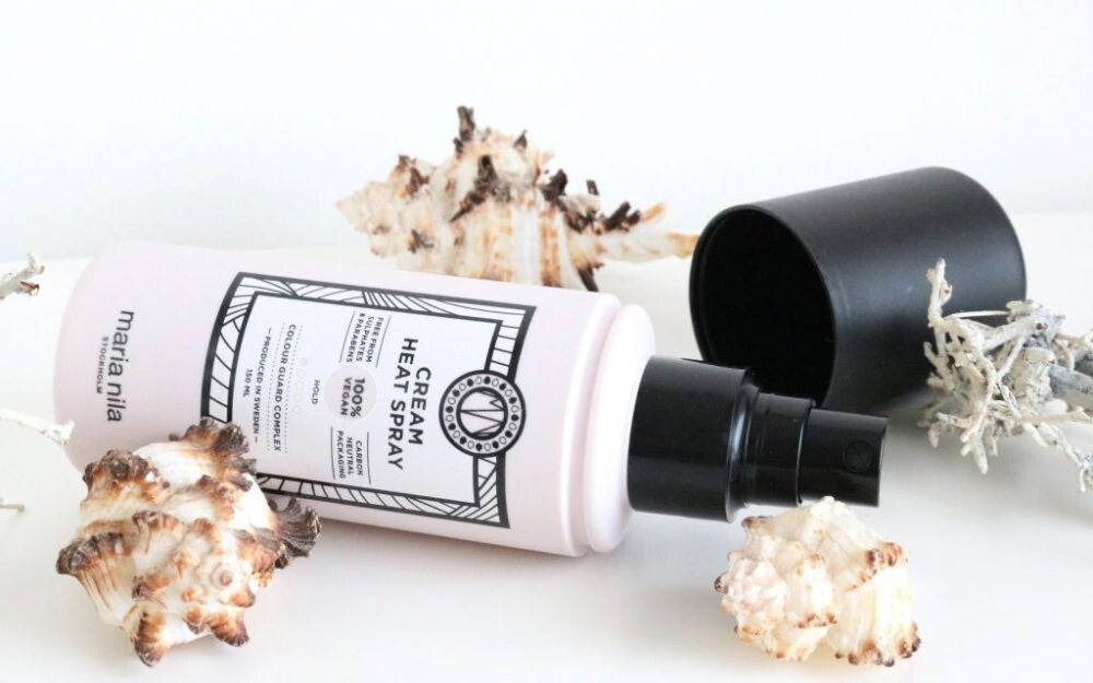 Een hydraterende beschermende spray tegen warmte-invloeden dat glans geeft aan het haar.