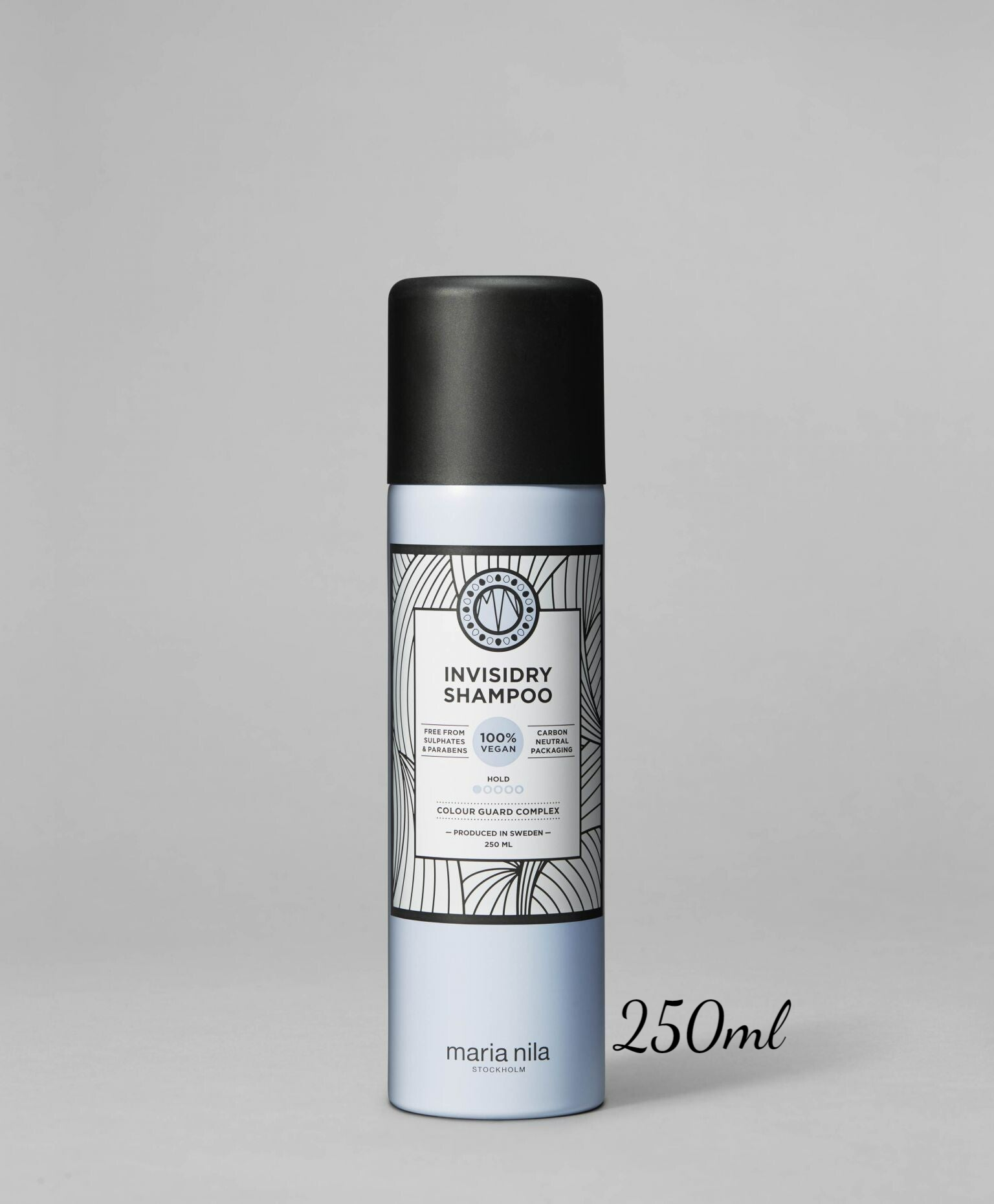 Maria Nila Invisidry Shampoo is een transparante poederspray die de vette haren direct verfrist en stevigheid biedt aan het haar. De poederspray zorgt voor een intens volume zonder dat het haar stug wordt zoals bij andere droogshampoo's. De vegan formule van deze spray beschermt het haar tegen kleurverlies dankzij het speciale ColorGuard Complex. De droogshampoo heeft een beschermende werking tegen Uv-straling en is vrij van prabenen en sulfaten. Door de transparante spray is dit product geschikt voor alle haarkleuren en tinten.