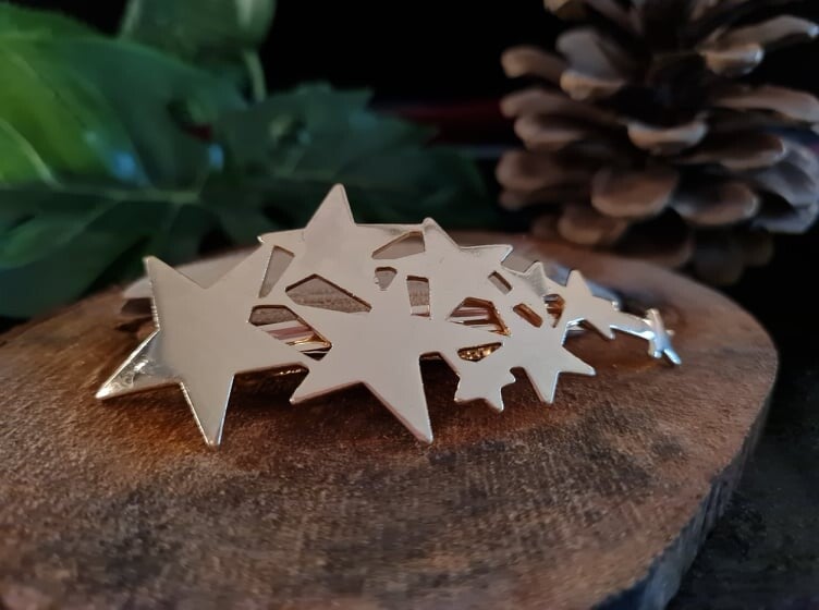 Metalen sterren bevestigd op een metalen clips.