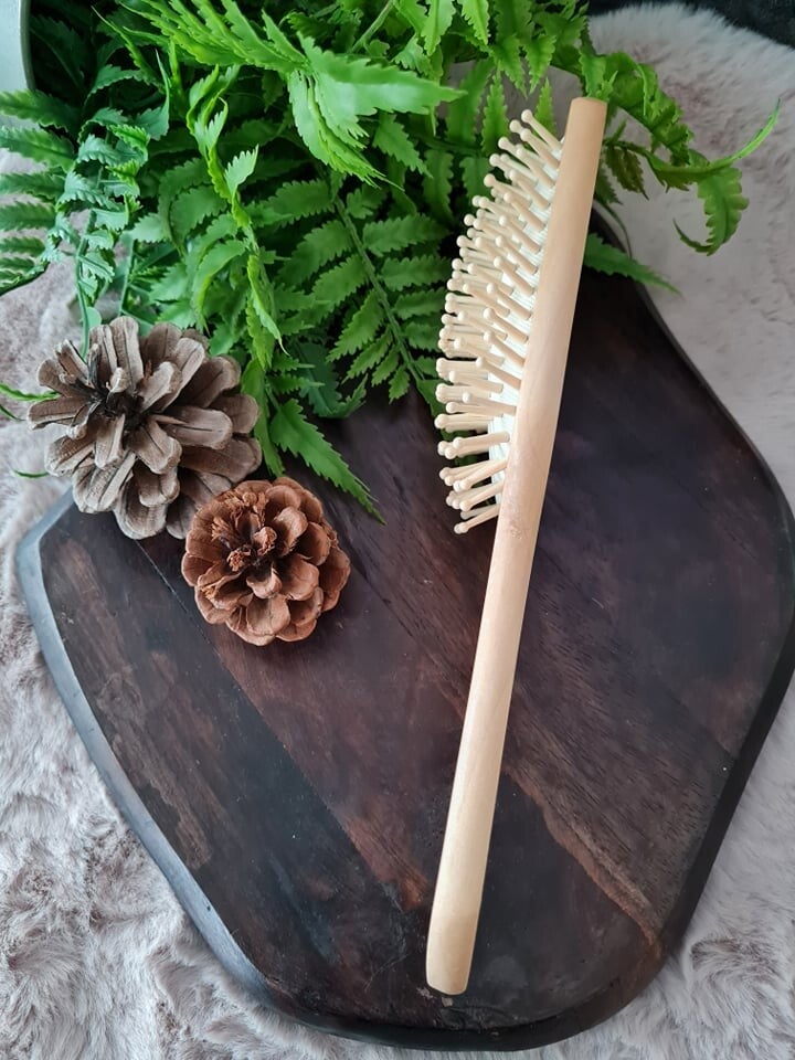 Bamboe haarborstel als alternatief voor de plastic haarborstels.