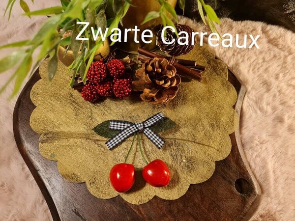 Kersen op een blaadje met een strik bevestigd op een metalen clips.Een mooi vintage haarstuk dat je kapsel naar the next level brengt.